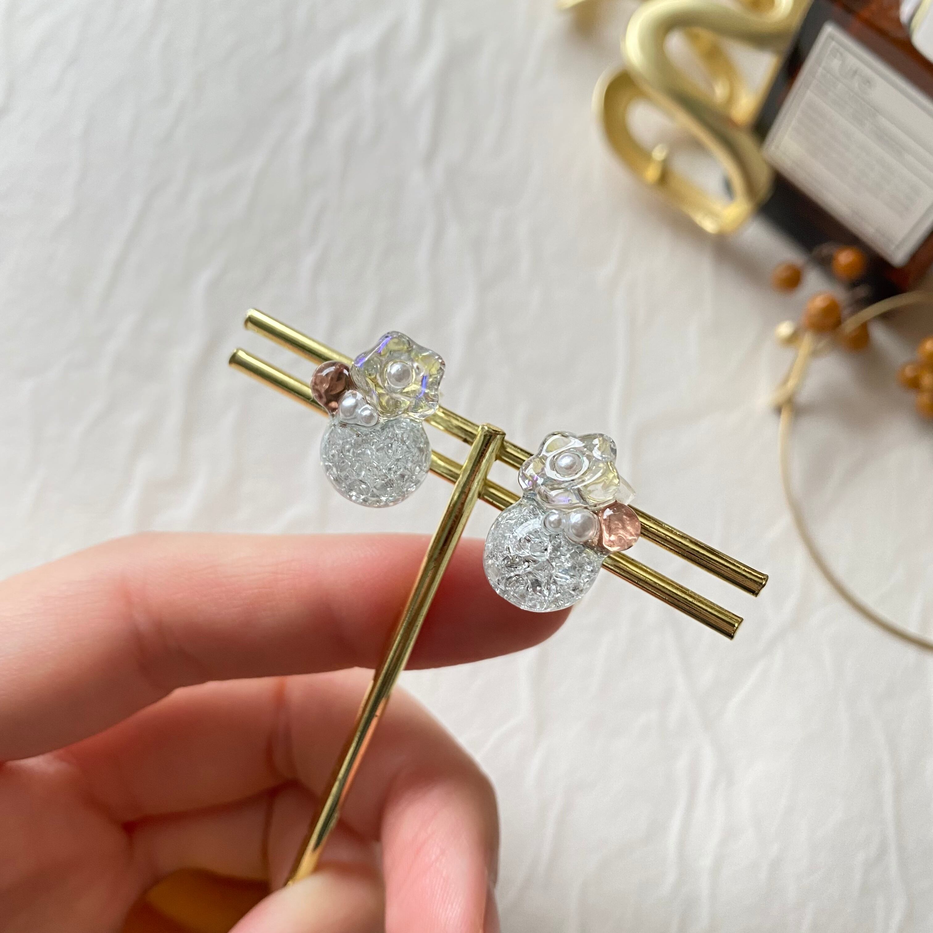 まんまる花瓶にいけられた花束をイメージした耳飾り